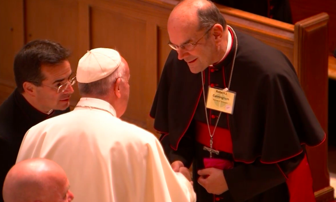 Bishop Robert J. Cunningham was among the U.S. bishops who met Pope Francis in the Cathedral of St. Matthew the Apostle Sept. 23, after the Holy Father offered midday prayer.