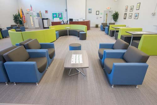 She loves the couches and the mini-tables — perfect for study tools like Chromebooks — in the new library/learning center.