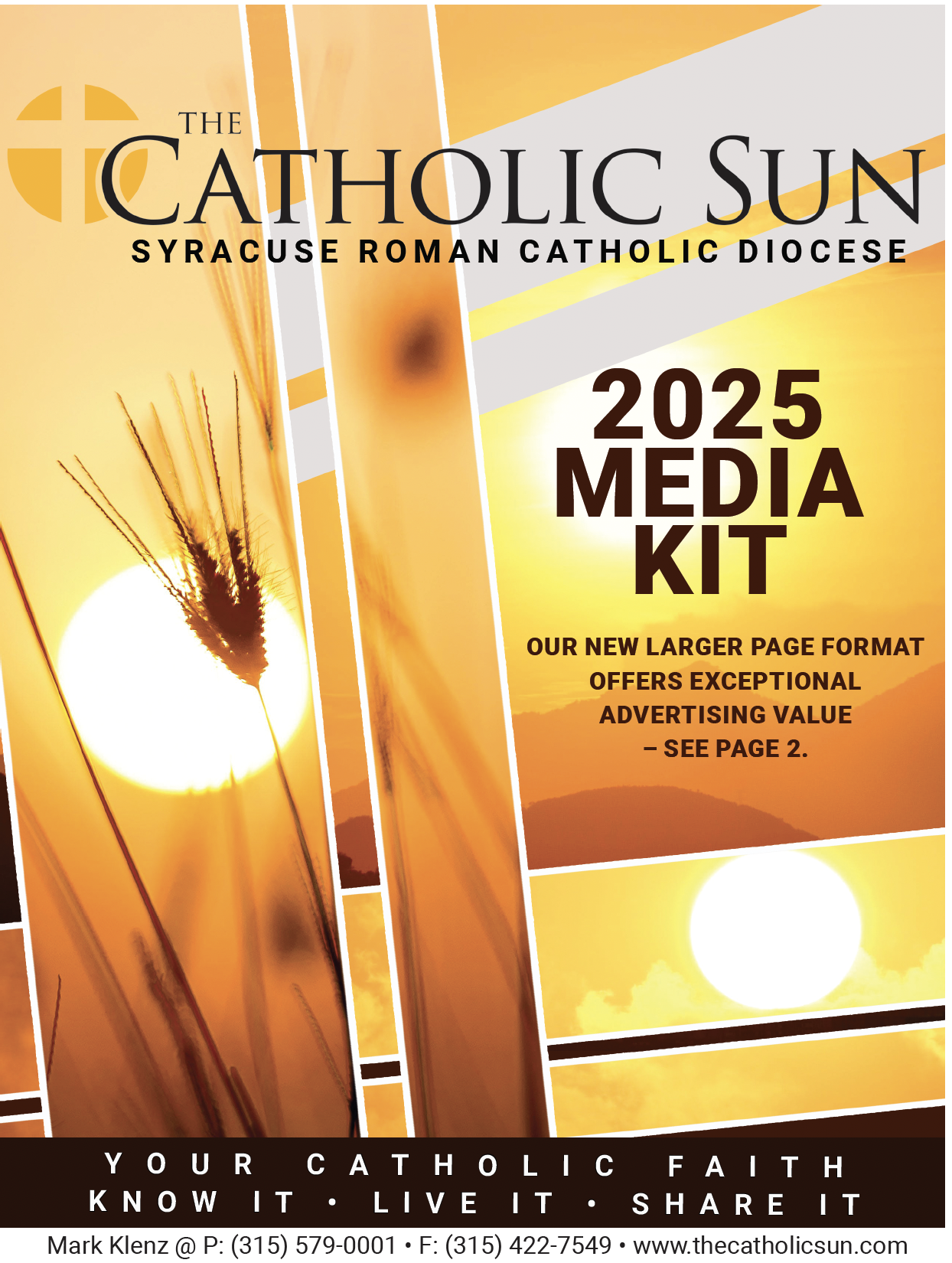 The Sun serves the seven counties of the diocese – Broome, Chenango, Cortland, Madison, Oneida, Onondaga, and Oswego. Since September 2022, The Catholic Sun has been published via 26 print and digital issues per year, as well as a free, e-mailed Digital Update on the opposite 26 weeks. A subscription costs just $26 per year ($31 outside the diocese). The Sun’s website, thecatholicsun.com, is updated daily.