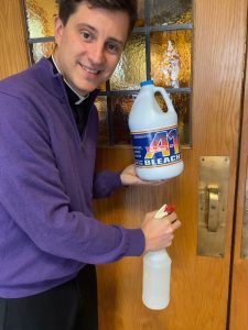 Father Chris Ballard, pastor of Our Lady of Hope Parish in Syracuse, said he and parish staff are cleaning all commonly touched surfaces with one of the disinfectants identified by the EPA for use against the virus that causes COVID-19. (Photo provided)