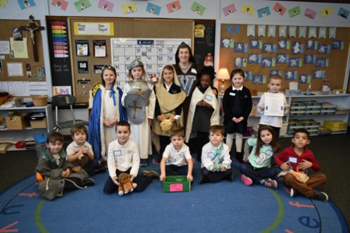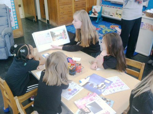 Students from Seton Catholic Central in Binghamton visited St. John the Evangelist School, where they read to kindergarten, first, second, and third graders. Under the guidance of Seton science teacher Linda Garbade, the 20 Seton students broke up into groups of four and spent about an hour in one of the primary classes. The St. John students had a great time having some of their favorite books read to them by the “big kids.” (Photo courtesy St. John the Evangelist School)