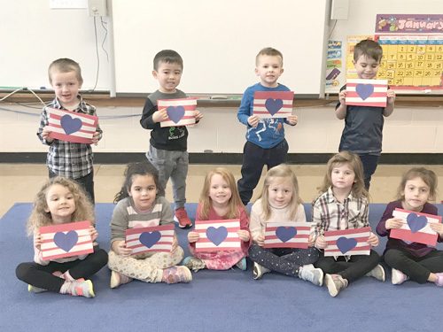 Pre-K 4 students from St. Mary’s Academy in Baldwinsville participated in the diocesan-wide Day of Service by making cards for veterans thanking them for their service (above) and had fun dressing up for Favorite Team Day (below) as well! (Photos courtesy Renae Henderson)