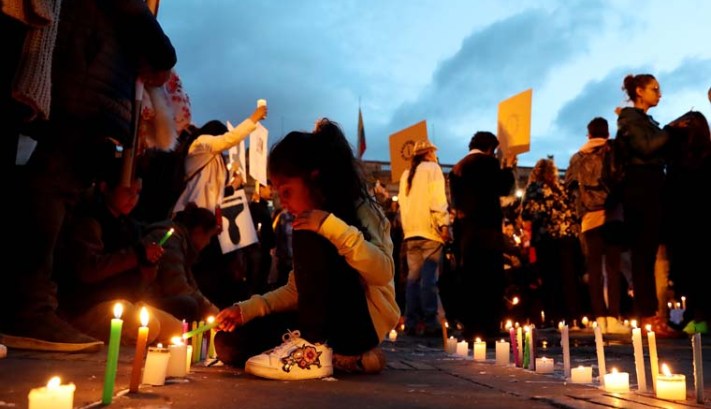 A girl lights a candle during a protest in early July against the killing of social leaders in Bogota, Colombia. If Colombians truly seek peace, they must give up vengeance and seek reconciliation by forgiving themselves and one another, said Consolate Father Leonel Narvaez, who has devoted his life to that mission. -CNS photo | Leonardo Munoz, EPA