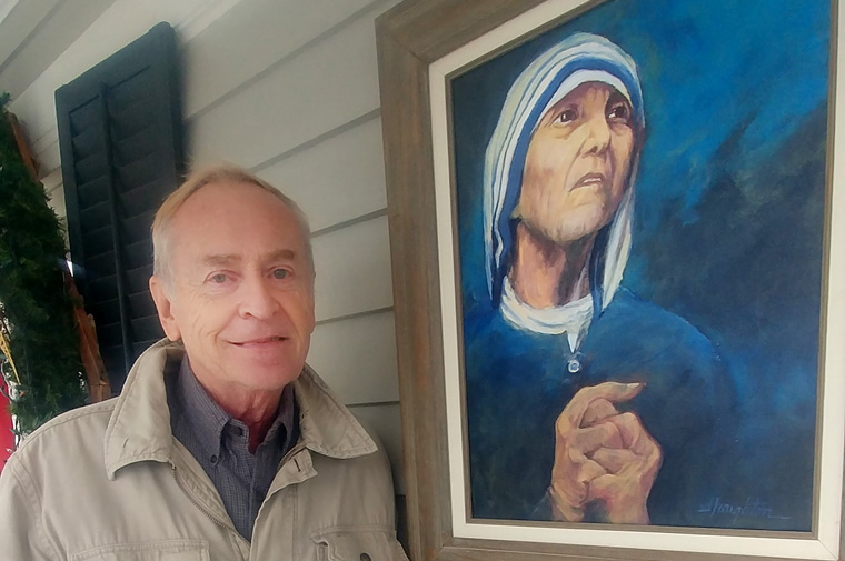 When he finished the neglected painting of Mother Teresa, “she was with me. It was just like she was right there. And she was laughing and joking. It’s just: ‘Oh, my nose isn’t that big. What are all these wrinkles on my face; I don’t have that many wrinkles.’ Just joyful conversation while I was painting. And it wasn’t like I looked at her and I was scared because I’m seeing something that was dead; it was just her whole spirit that enveloped me.”