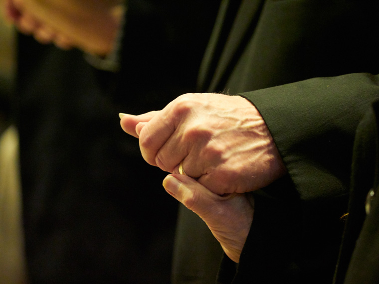 Mary and Mark Meier, parishioners of the Church of the Holy Family in Endwell marking 33 years of marriage, exchange smiles at the Mass. The couples were among dozens who attended the annual Mass at the Cathedral.