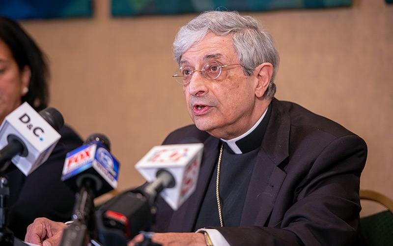 “This is a very difficult and painful decision,” Bishop Salvatore R. Matano said in a video and letter to parishes released Sept. 12. The bishop read the letter at the beginning of a Sept. 12 press conference at the diocesan Pastoral Center.