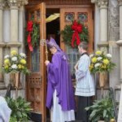 “Open the gates of justice, we shall enter and give thanks to the Lord. This is the Lord’s gate: let us enter through it and obtain mercy and forgiveness,” Bishop Cunningham said at the Cathedral, reading the words of the rite.