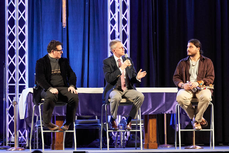 The 11th annual IGNITE Catholic Men’s Conference drew some 900 men from across the diocese to Syracuse’s SRC Arena March 30 for a day of faith and fellowship. Bishop Robert J. Cunningham opened the daylong event with Mass and a homily that reminded attendees that God never tires of waiting for them to return to Him. (Read his complete homily on page 3 of this issue). Throughout the day, speakers Dr. John Bergsma, Chris Padgett, and Eric Mahl offered wisdom and wit to the crowd. Mahl, a former NFL player who now lives, works, and prays in service with the Marian Missionaries of Divine Mercy, shared his story of conversion and ministry to those in need. He urged attendees to allow the Lord to speak to them and “to leave this conference hearing Jesus commission you to love others as He loves you right now.” Watch conference highlights from Syracuse Catholic Television at youtube.com/syrdio, and save the date for next year’s IGNITE Conference: March 28, 2020.