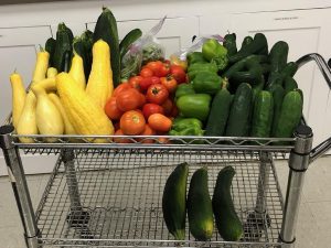 A cart full of vegetables grown at God’s Garden at Our Lady of Good Counsel Church in Endicott arranged by Nick Pianella. Photo Credit | Nick Pianella
