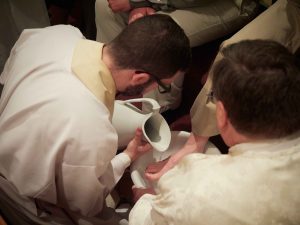 “On this night we as a Church gather in the evening and our attention is directed to the ordained priesthood, the Holy Eucharist with the washing of feet, the solemn celebration of the Eucharist, and the procession with the Eucharist to the altar of repose where we adore Christ and keep watch with him. Holy Thursday reminds us that Christ has given us a new commandment: to love one another as he has loved us. He himself showed his love to us by sacrificing himself on the Cross. His love and the salvation he won for us are made new and present in our midst whenever the sacrifice of the Holy Eucharist is celebrated.” (Read Father Christopher R. Seibt’s 2015 Holy Week meditation in full here.)