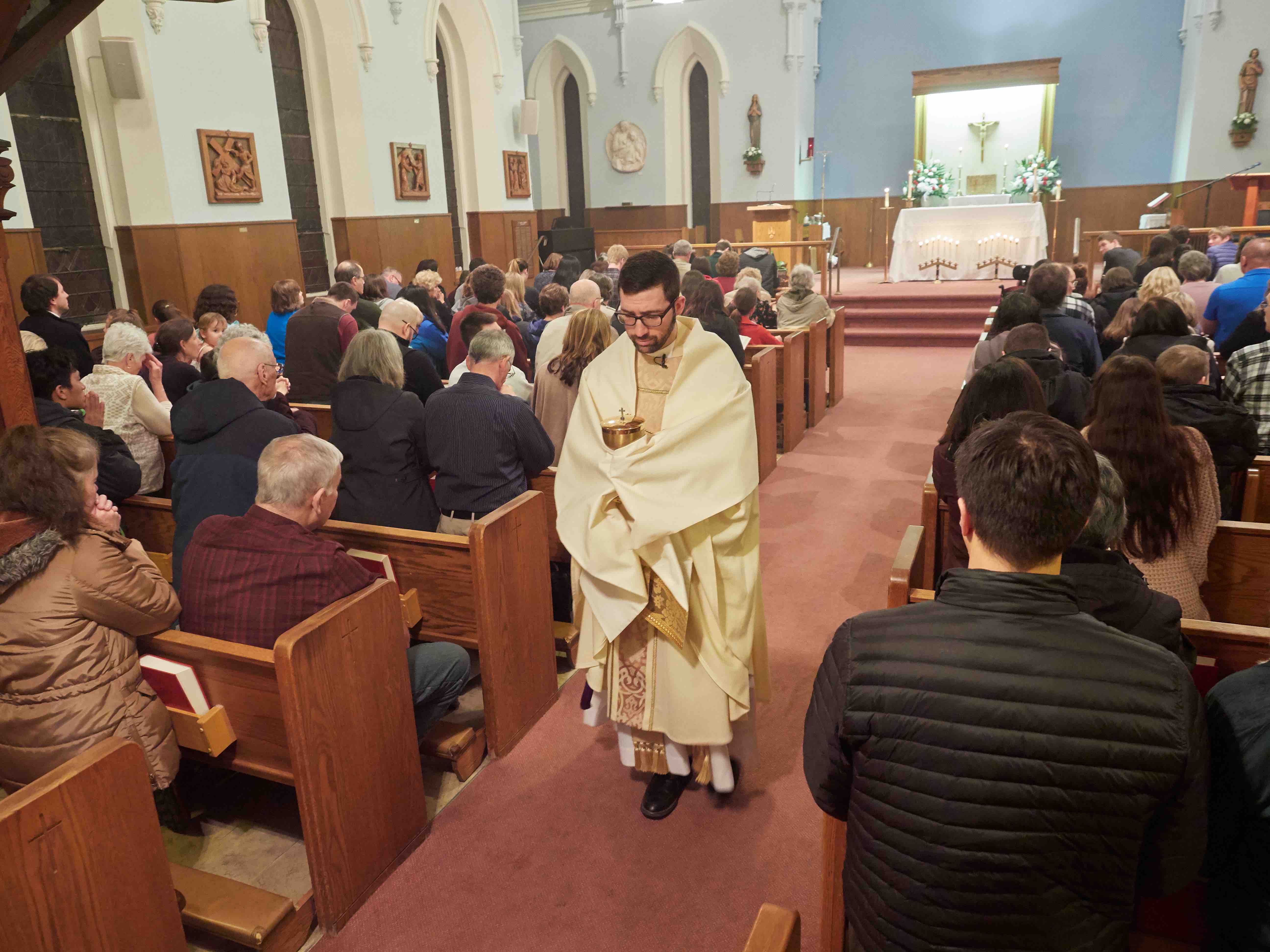 “Our Pastoral Councils have been working in collaboration with Colgate Newman Community on how to strengthen our relationship as communities of faith during Holy Week,” St. Mary’s and St. Joan’s Pastor Father Jason Hage explained in the March 25 parish bulletin. “The Colgate Newman Community agreed to no longer have their 10 p.m. Holy Thursday Mass on campus in order to join us for our Holy Thursday Mass at 7 p.m. Some members of the Newman choir will be singing for us at the Mass. The one great idea our whole group came up with this year was to process the Blessed Sacrament from St. Mary’s to Colgate’s Memorial Chapel immediately following the 7 p.m. Mass. This will be a beautiful sign of our unity as one worshipping Catholic community as we quietly and simply process our Eucharistic Lord through the streets of Hamilton to the chapel on campus.”