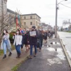 Following the Holy Hour, those at the Cathedral gave such witness, making the walk to Armory Square where more people had gathered to join in the March for Life. The combined crowd walked peacefully up Jefferson Street, crossing the Salina and Warren intersections to arrive the Onondaga County Courthouse steps, directly across from the Cathedral at Columbus Circle.