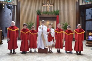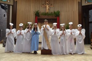 Immaculate Conception School fourth graders performed a Passion play March 26, 2018. Pictured here are the angels with Jesus. (Photo courtesy Caroline N. Agor-Calimlim)