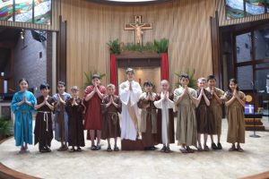 Immaculate Conception School fourth graders performed a Passion play March 26, 2018. Pictured here are the townspeople with Jesus. (Photo courtesy Caroline N. Agor-Calimlim)