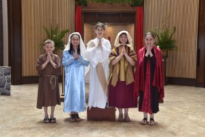 Immaculate Conception School fourth graders performed a Passion play March 26, 2018. Pictured here are Ava Toia (Mary Magdalene), Gabriella Dardis (soldier), Thomas Cooney (Jesus) and Richard Ricelli (soldier). (Photo courtesy Caroline N. Agor-Calimlim)