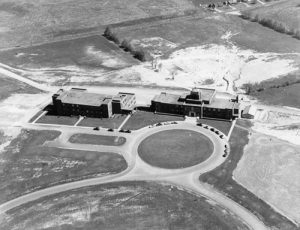 May 1955: The first dormitory, Nelligan Hall, is completed, housing 137 men and six prefects. Enrollment is 1,208. By 1964, 600 students, including 200 women, would live on campus.