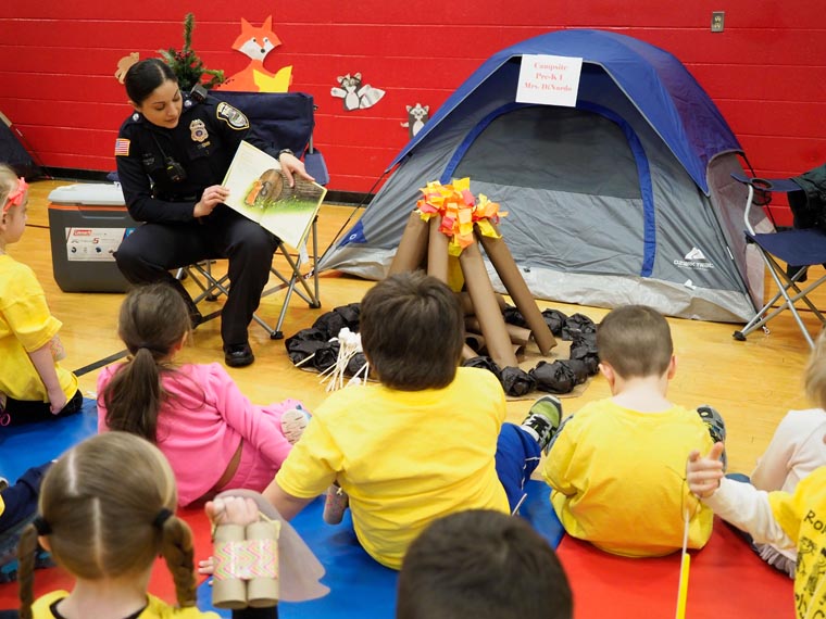 ROME — Rome Catholic School held a Literacy Camp Out Feb. 2 as part of its Catholic Schools Week celebrations. Each class had a “campsite” in the gym with a tent and “campfire.” Local community leaders and celebrities read to the children at each campsite.