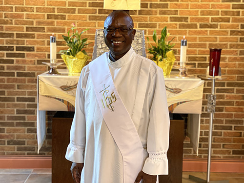 DEACON ADEOLU ADEMOYO: ‘Ade’ (pronounced ah-Day) to those who know him, first experienced the call to the vocation about 17 years ago. He credits his family, a variety of specific Scripture passages and a number of saints as the source of his inspiration. But “the example of Christ washing the feet of his disciples” is first and foremost on his list. In addition to helping at church, the Linked Parish of St. Thomas Aquinas and St. Patrick’s Church in Binghamton, Ade also is involved in chaplaincy ministry at both Wilson Hospital and jail ministry at Broome County Sheriff’s Corrections Division.