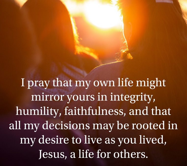 I pray that my own life might mirror yours in integrity, humility, faithfulness, and that all my decisions may be rooted in my desire to live as you lived, Jesus, a life for others.