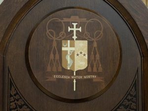 “I love the fact that it [the cathedra] has these great big, beautiful quad posts that come up and round at the top. The sweeping arms I think are very beautiful,” Rider said. “The bishop’s crest — I think that really makes a statement.”