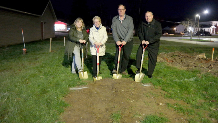 Sacred Heart Church in Cicero broke ground for a Eucharistic Adoration Chapel Nov. 19. Pictured from left are Robin Sullivan, daughter of the major benefactor for the chapel, Ronald Stott; Jackie Fietkiewicz, trustee of Sacred Heart Parish; Ed King, facilities/construction manager for the Diocese of Syracuse; and Father Richard P. Prior, pastor. (Photo courtesy Deacon Kenneth Money)