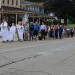 Holy Cross Academy in Oneida celebrated its feast day on Sept. 14, the Feast of the Exaltation of the Holy Cross, with a procession from St. Patrick Church and School to Holy Cross Academy. Father Chris Ballard and Father Nathan Brooks led the procession, and third- and sixth-grade students from St. Patrick’s School joined the staff and students from Holy Cross. The 1.4-mile procession included prayers and hymns and ended in Mass at Holy Cross. The day concluded with a luncheon. Principal Teri Maciag said, “I am so grateful that we were able to celebrate our feast day in such a joyous and prayerful way!” (Photos submitted)