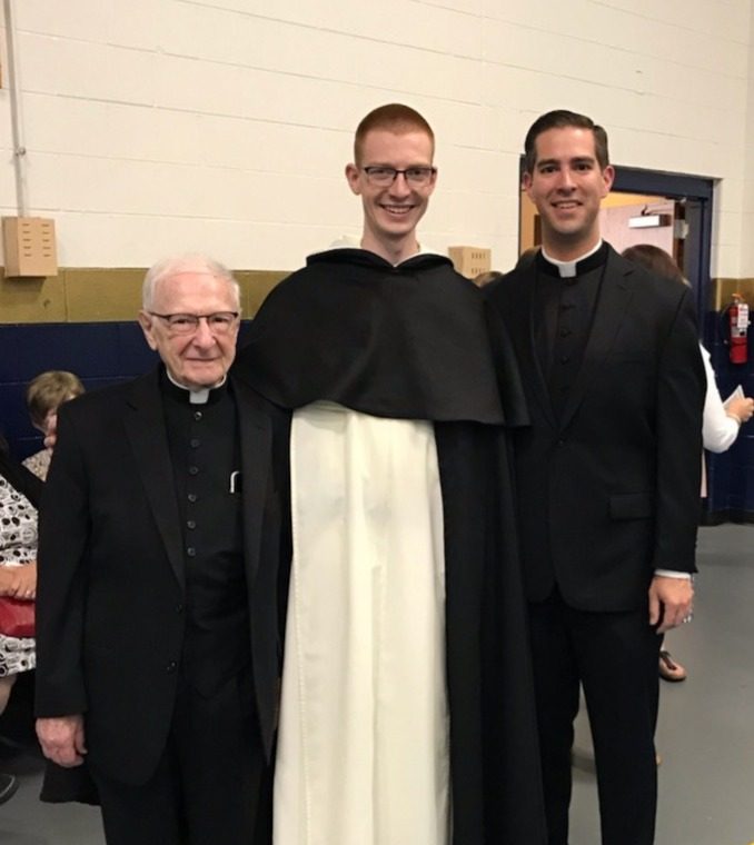 ABOVE: Profession to the Order of Friars Preachers, Dominican Province of St. Joseph, August 15, 2019, with Msgr. Yennock and Rev. Christopher Seibt. Photo credit | Kerri Elinich