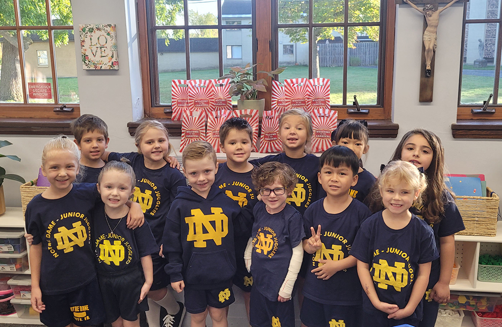 Pictured with his classmates, Graham Robertello (front row, third from right) shows the joy of friendship. Photos submitted by Kathryn Dekker, Notre Dame School