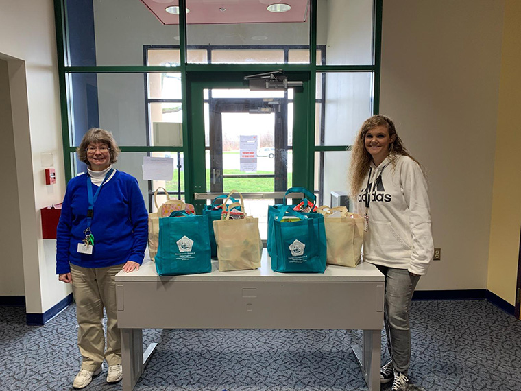 This week, her staff is distributing family entertainment bags. They hope the arts and crafts, card games, and Rice Krispies Treats ingredients will keep kids’ attention while they’re out of school.