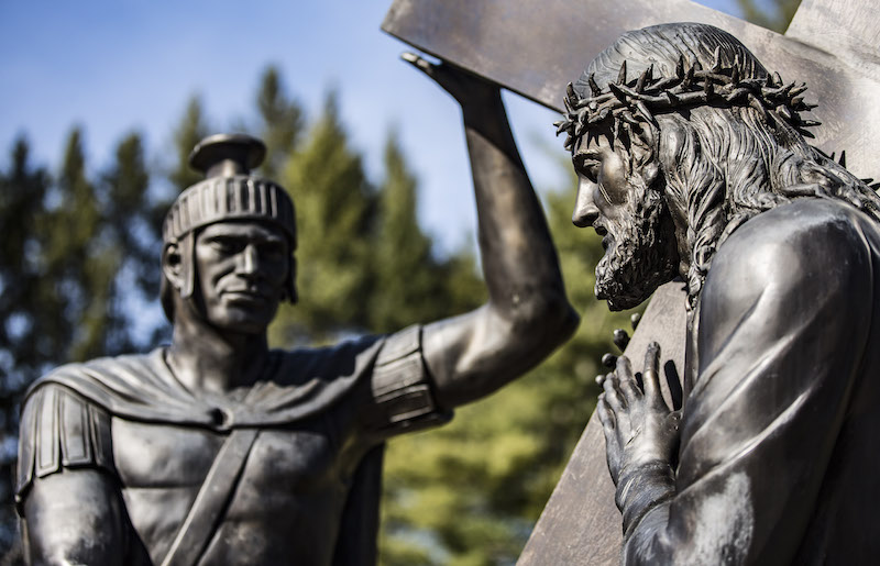 A life-size representation of Jesus carrying the cross is seen on the grounds of the National Shrine of the Divine Mercy in Stockbridge, Mass. (CNS photo | Octavio Duran)