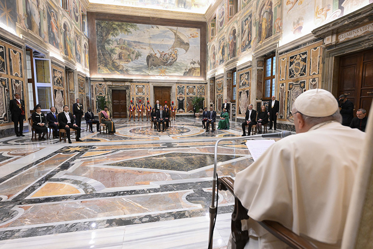 “The Holy See, in conformity with its nature and particular mission, strives to protect the inviolable dignity of each person, promote the common good and foster human fraternity among all peoples,” Pope Francis told new ambassadors to the Vatican from Iceland, Bangladesh, Syria, Gambia and Kazakhstan.